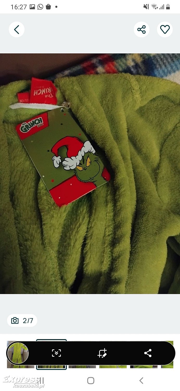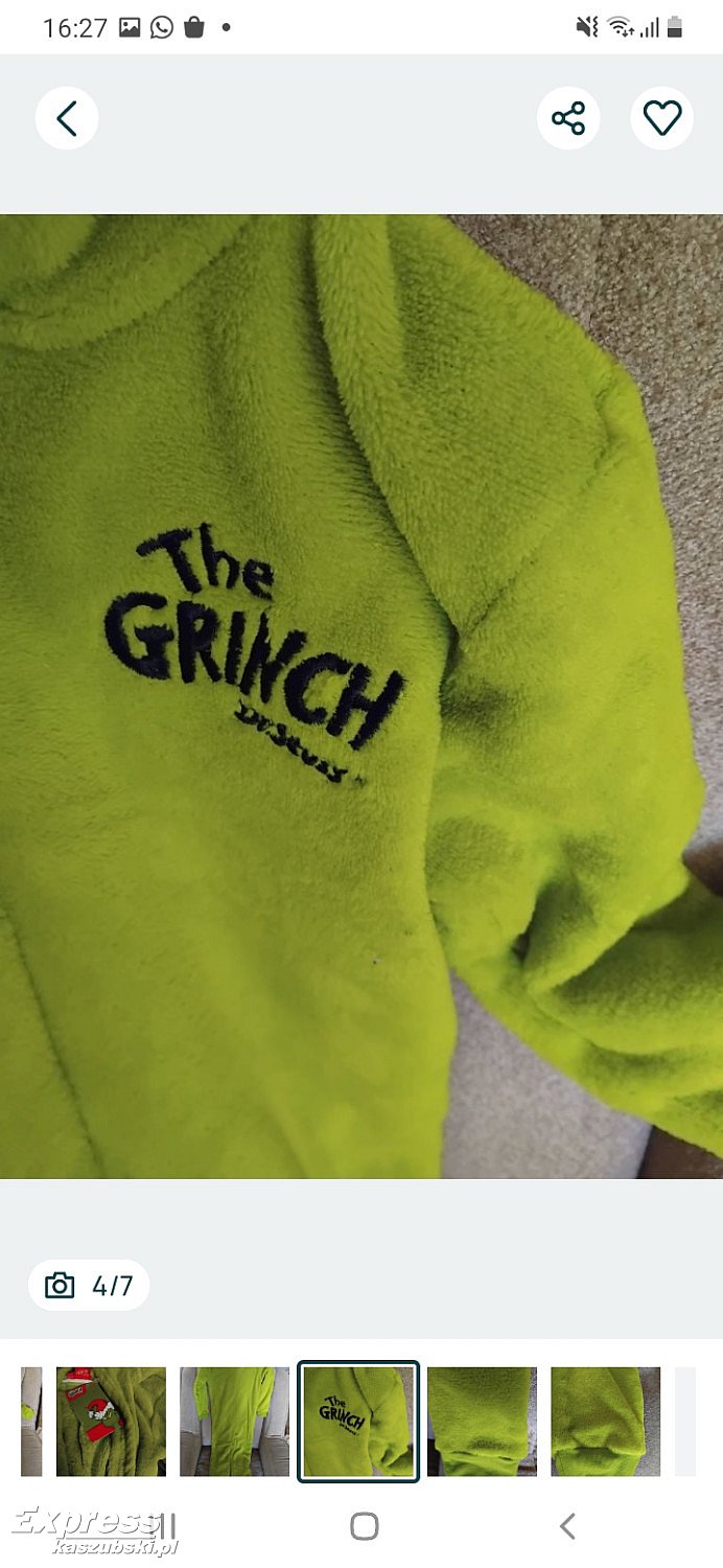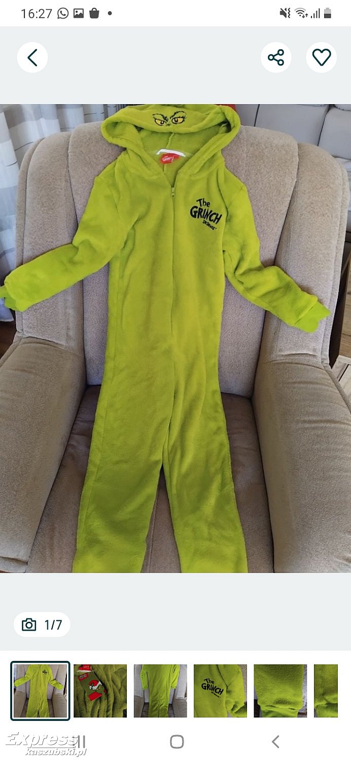 Nowy sliczny kombinezon,mieciutki w pieknym kolorze,seriii Grinch,rozmiar 122-128. Moze posluzyc takze jako przebranie. Super jakosc i wykonanie. Idealne do sesji np.przy choince. Polecam.