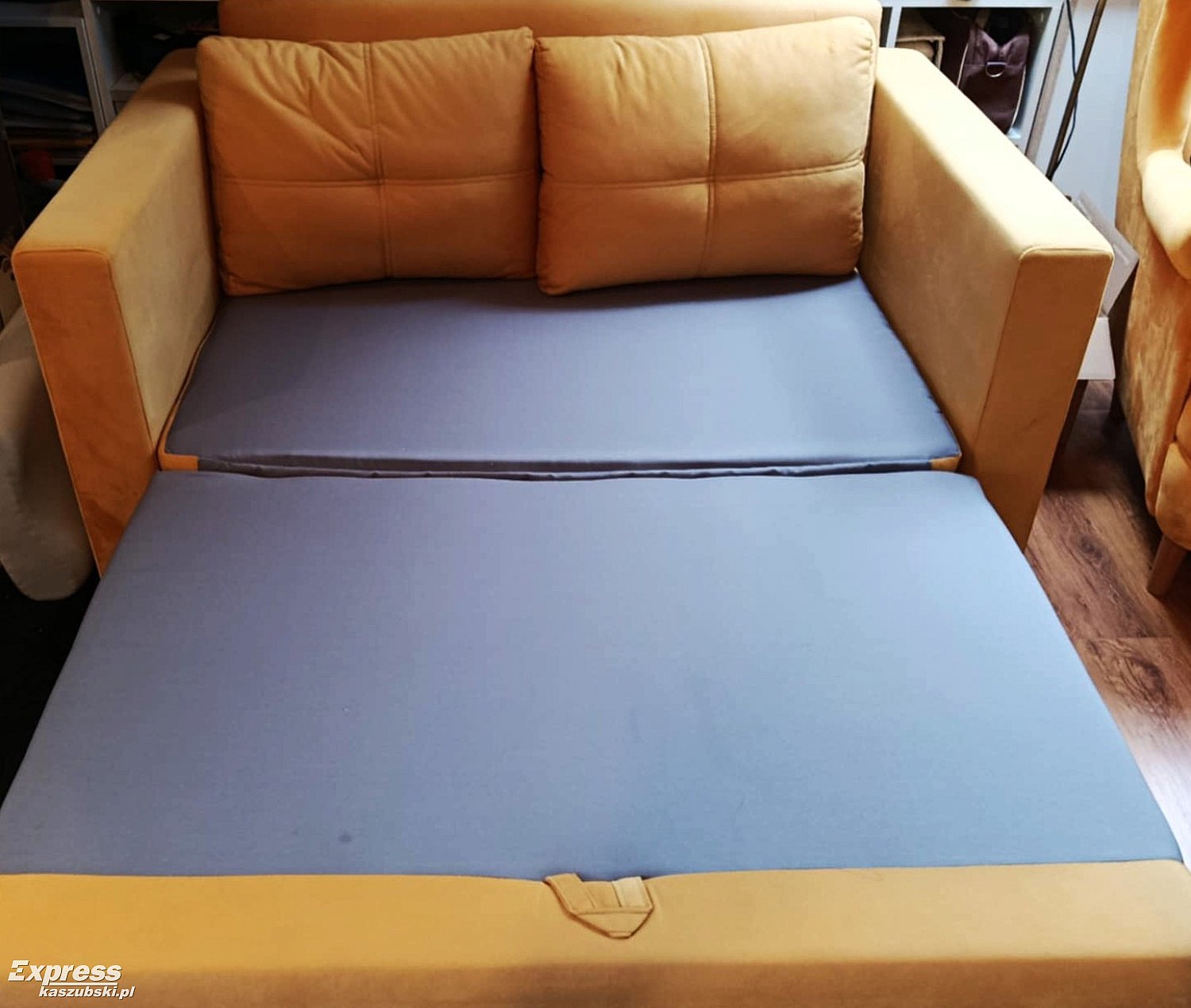 • Plecy w tkaninie meblowej , więc może stać na środku
