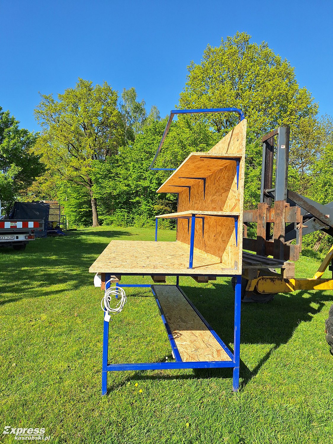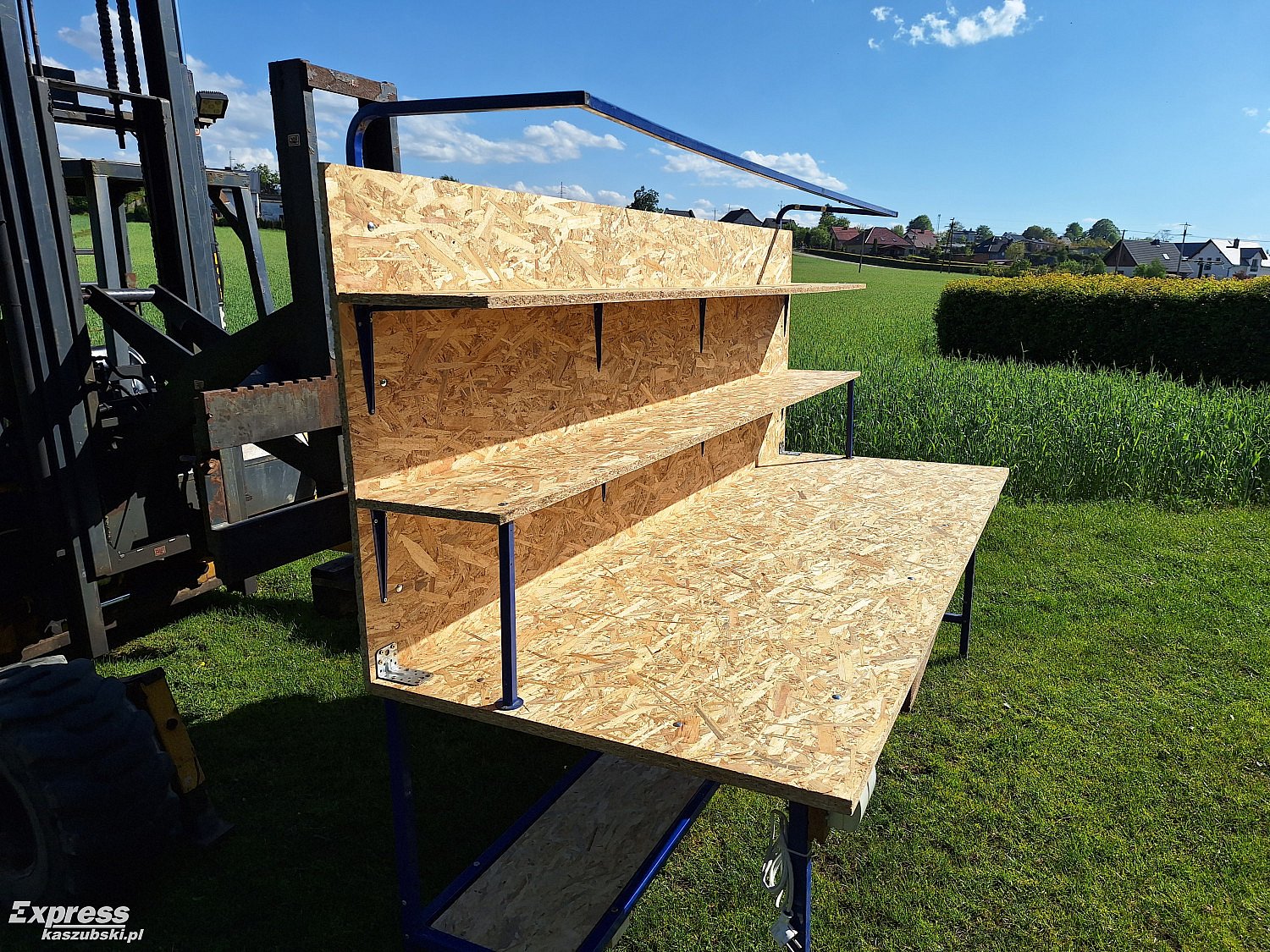 Całość wykonana z metalowego stelaża i plyt OSB.