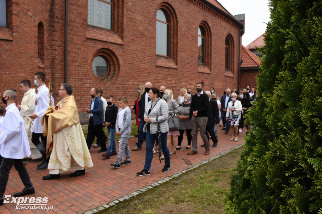 Procesja Bożego Ciała wokół kościoła św. Jana w Sierakowicach.