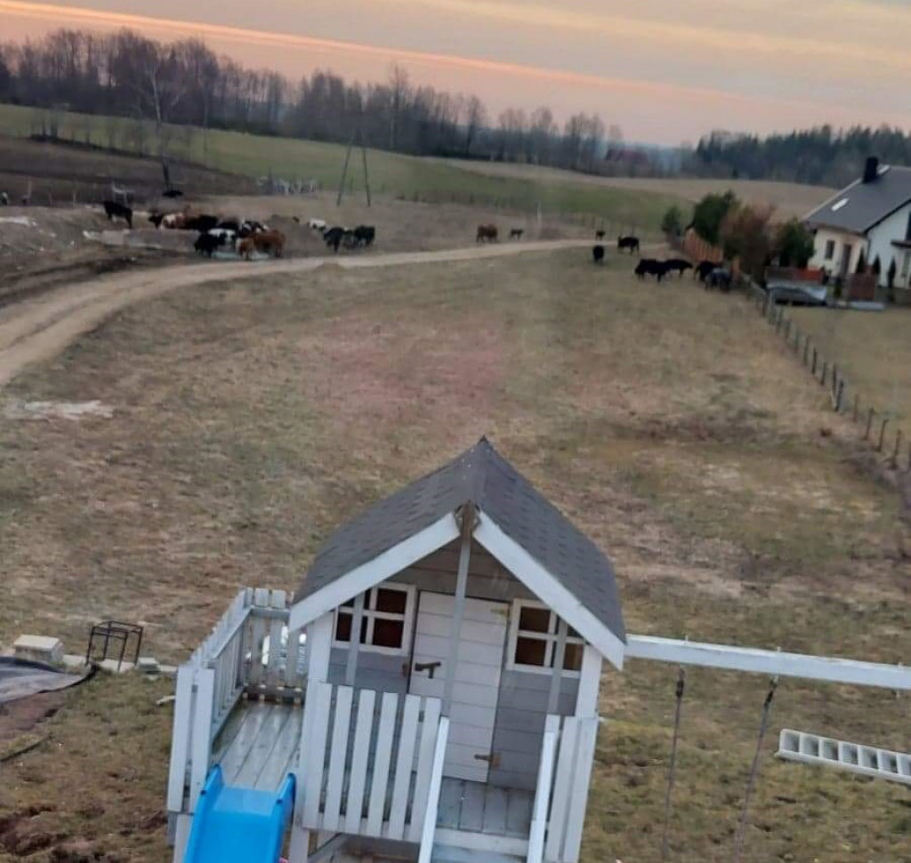 Zdjęcia mieszkańców Bąckiej Huty, którzy dokumentują sytuacje, gdy bydło z jednego z gospodarstw rozbiega się po miejscowości