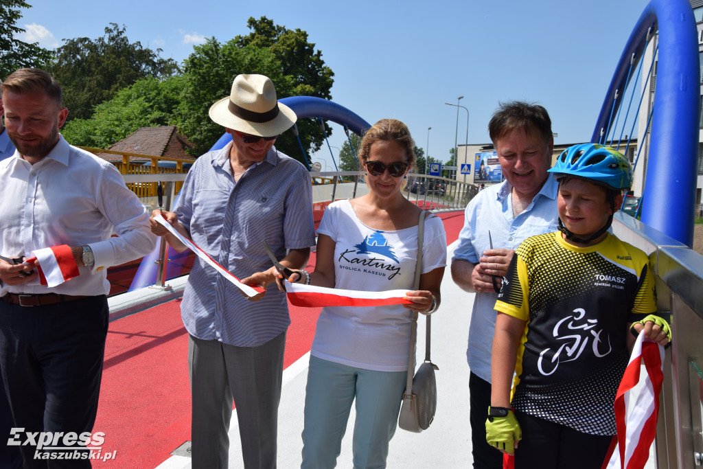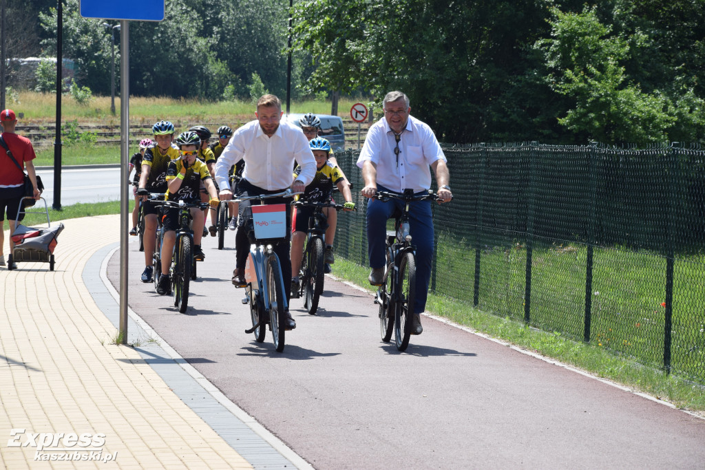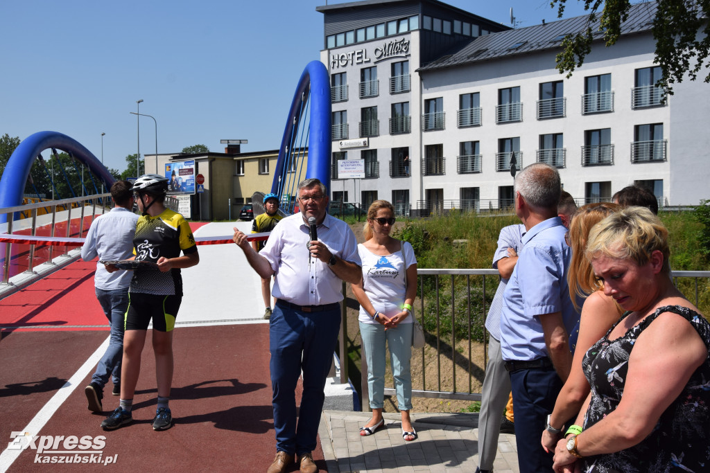 Rowerowym przejazdem zainaugurowano otwarcie kładki nad torami w Kartuzach. Wzięli w nim udział samorządowcy, radni, mieszkańcy.