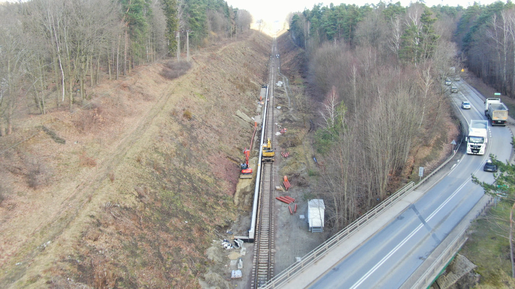 PKP PLK podzieliło się nowymi lotniczymi zdjęciami postępu prac na trasie Glincz-Kartuzy oraz przy bajpasie kartuskim. W Dzierżążnie powstaje dodatkowy tor i nowy peron, postępuje budowa peronów m.in. w Leźnie.