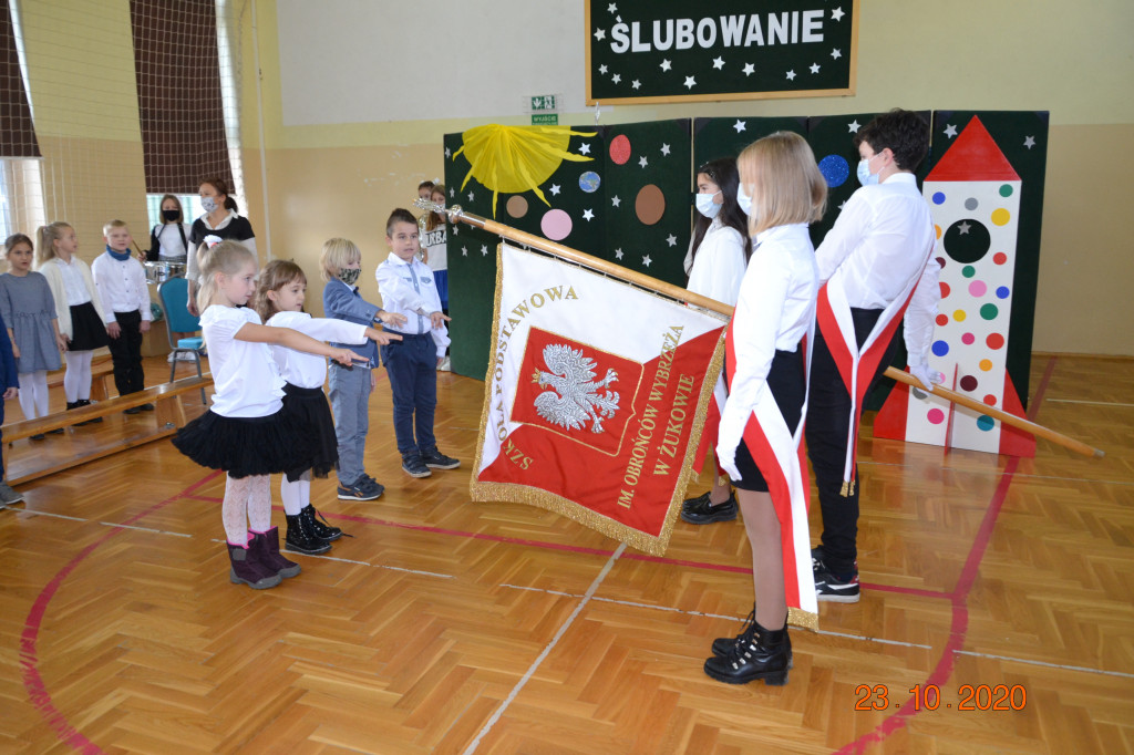 W Szkole Podstawowej nr 1 im. Obrońców Wybrzeża w Żukowie odbyło się uroczyste ślubowanie klas pierwszych i pasowanie na uczniów. W tym roku ślubowanie składały trzy klasy.